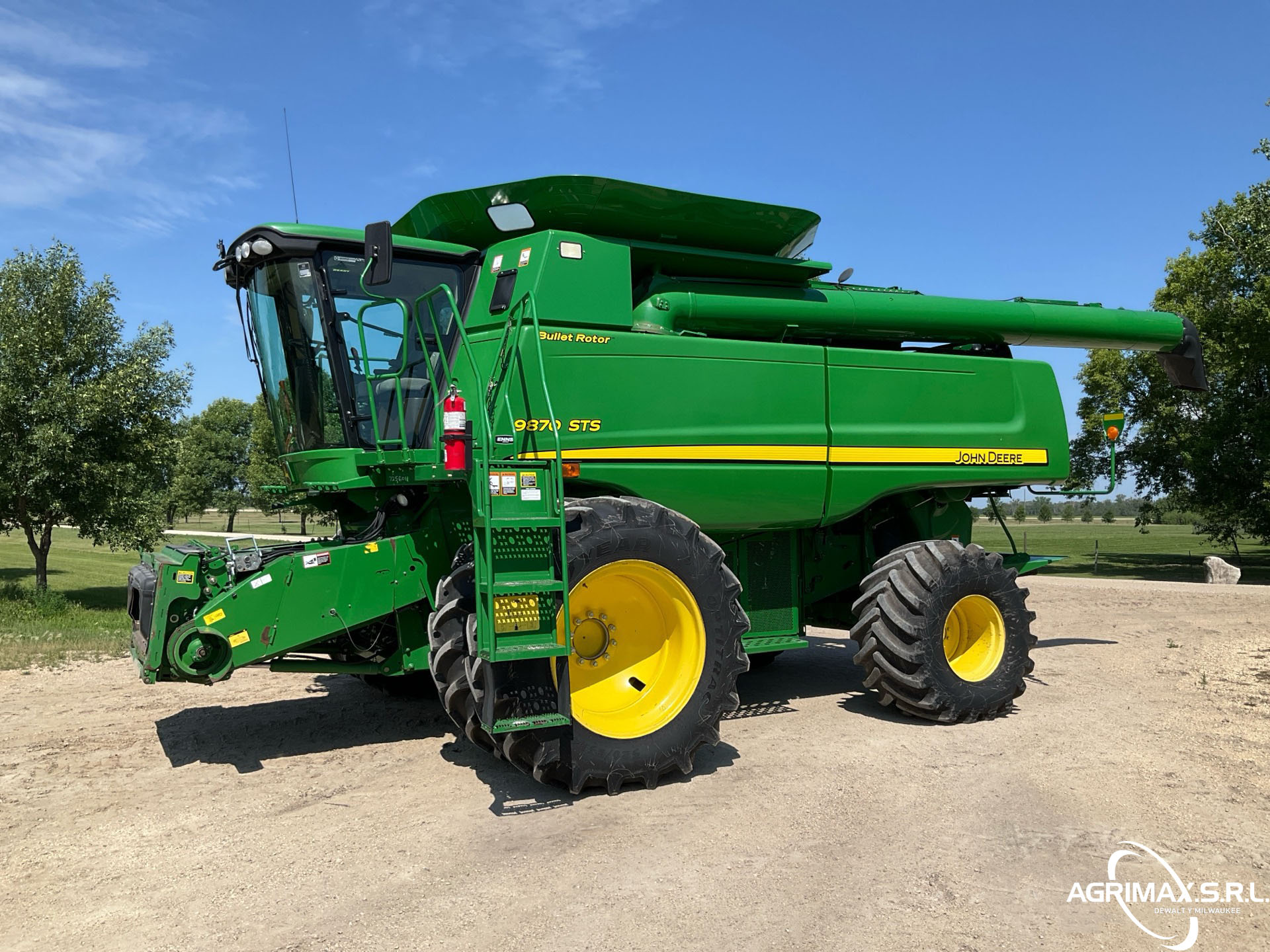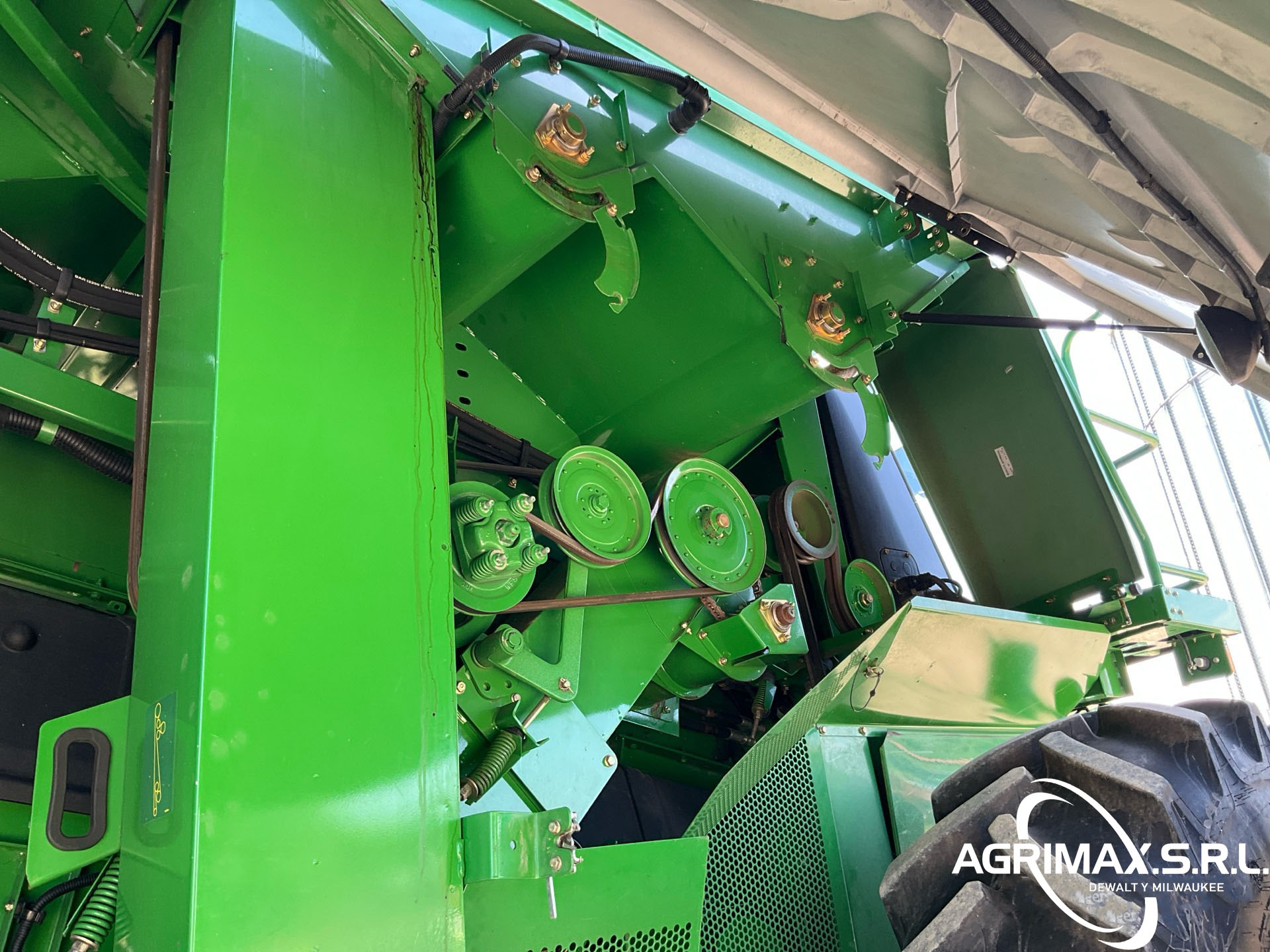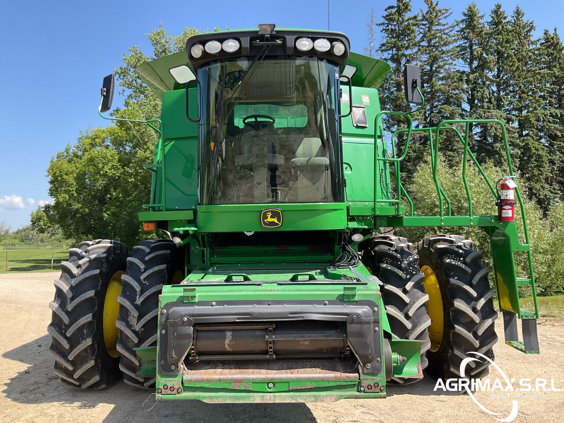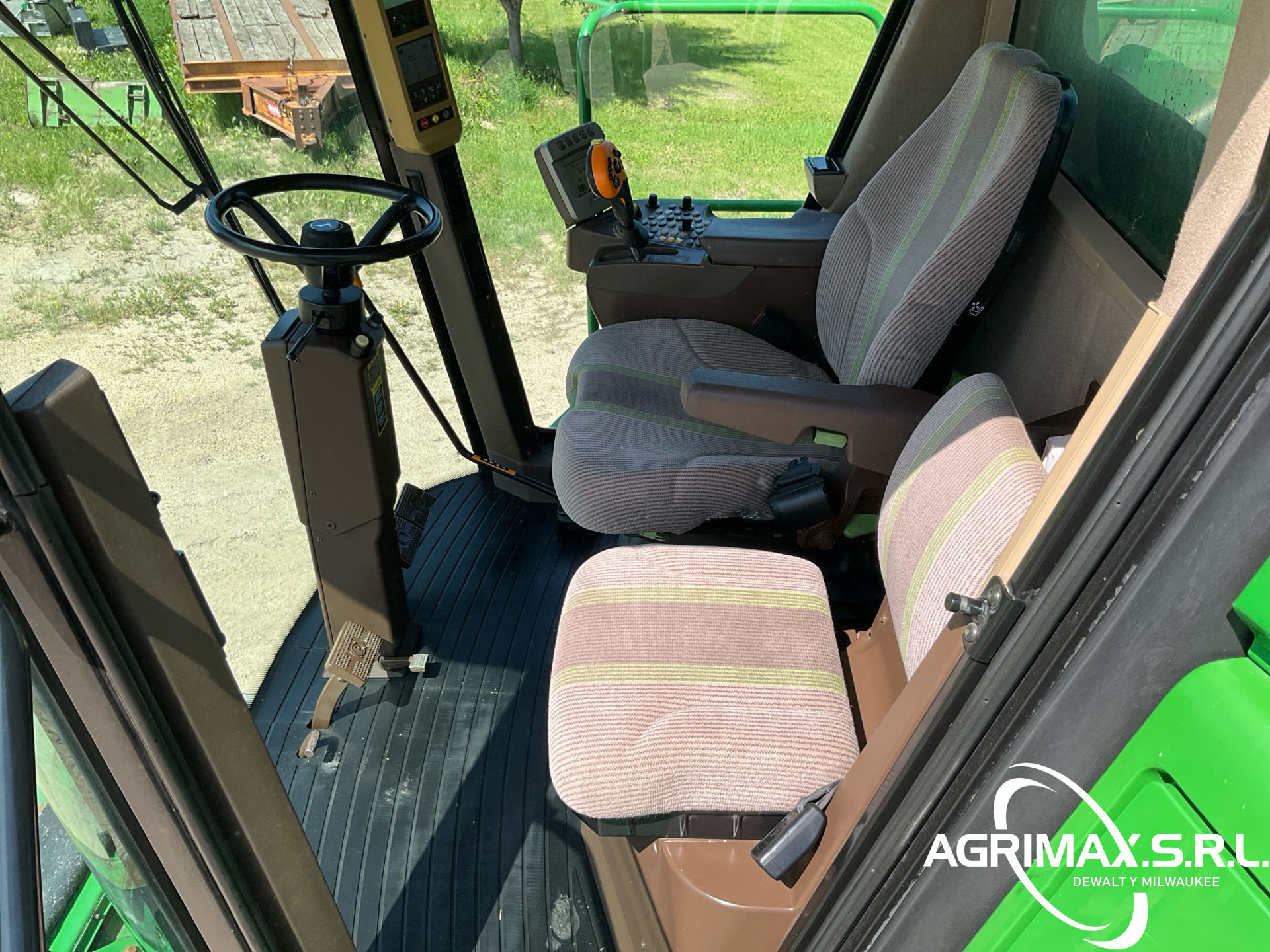 2875 horas de trabajo del separador, aire acondicionado, transmisión hidrostática, inversor, molinete de velocidad variable, control automático de altura del cabezal, avance longitudinal, sistema de monitoreo de cosecha, sensor de rendimiento y humedad, pantalla CommandCenter, sinfín de 24 pies, alimentador de mies con inclinación lateral, extensiones para tanque de granos, picador de corte fino, neumáticos delanteros dobles 520/85R42, neumáticos traseros 750/65R26, caja de cambios de 5 velocidades