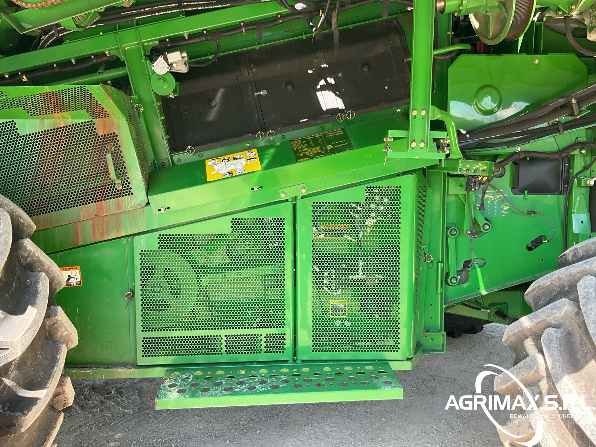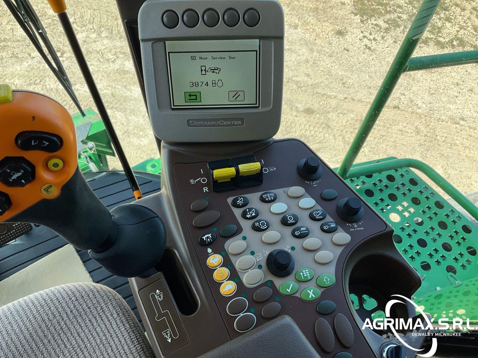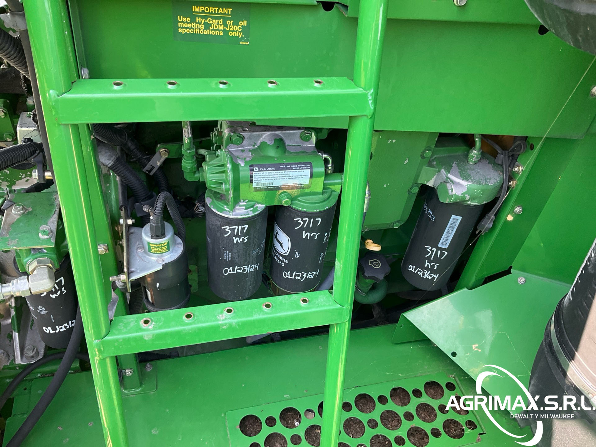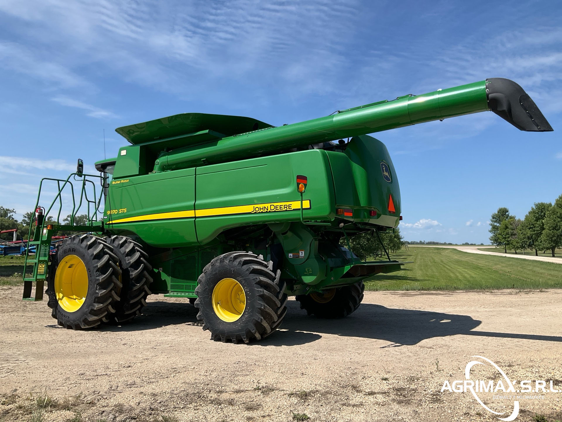 2875 horas de trabajo del separador, aire acondicionado, transmisión hidrostática, inversor, molinete de velocidad variable, control automático de altura del cabezal, avance longitudinal, sistema de monitoreo de cosecha, sensor de rendimiento y humedad, pantalla CommandCenter, sinfín de 24 pies, alimentador de mies con inclinación lateral, extensiones para tanque de granos, picador de corte fino, neumáticos delanteros dobles 520/85R42, neumáticos traseros 750/65R26, caja de cambios de 5 velocidades