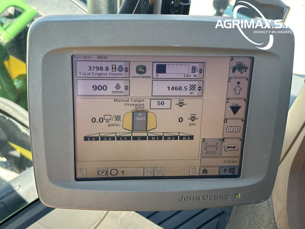 Ala DE 27Mt, ESPACIADO DE 20″, TANQUE DE ACERO INOXIDABLE DE 3000Lt, AJUSTE HIDRÁULICO DE LA BANDA DE RODAMIENTO, MOTOR DE 6.8L, BOMBA ESTÁNDAR CON UN SOLO CAUDALÍMETRO, EDUCTOR DE ACERO INOXIDABLE, RETORNO DE LA PLUMA A LA ALTURA, NEUMÁTICOS 520/85R38.